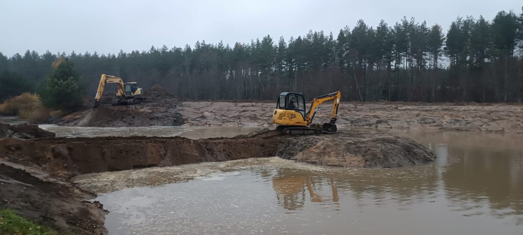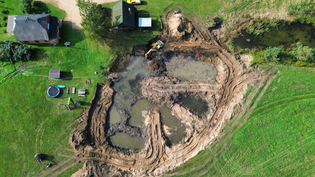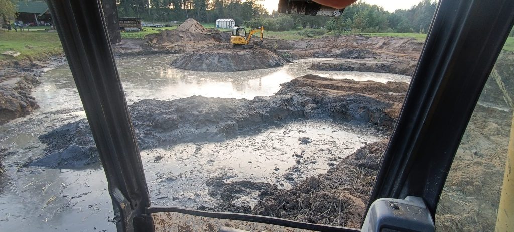 Tika veikta esoša dīķa padziļināšana un palielināšana. Darbus veicām ar 3T un 16T ekskavatoriem. Darbu izpildes laikā pastāvīgi tika sausināts dīķis ar 4 benzīna sūkņiem.