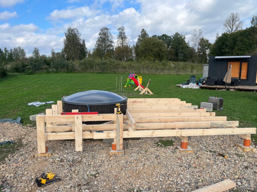 Terase ar iebūvētu kublu. Post last modified:3 februāris, 2026 Post category:Terases Tika veikta pamatnes sagatavošana. Pamatu līmeņošana un betonēšana. Rāmja izveide, kubla ievietošana un terases dēļu uzklāšana. Veikta materiālu iegāde un piegāde. Darba ilgums 3 dienas. Please Share This Share this content Opens in a new window Opens in a new window Opens in a new window Opens in a new window Opens in a new window Opens in a new window Opens in a new window Opens in a new window Opens in a new window Opens in a new window Read more articles Previous PostEsošā dīķa padziļināšana un palielināšana. You Might Also Like Terases izveide dārza mājai. 28 janvāris, 2026 Terase/piebūve 28 janvāris, 2026 Dārza māja. 28 janvāris, 2026 Atbildēt Atcelt atbildiCommentEnter your name or username to comment Enter your email address to comment Enter your website URL (optional) Saglabājiet manu vārdu, e-pasta adresi un vietni šajā pārlūkprogrammā nākamajai reizei, kad vēlēšos pievienot komentāru. Δ